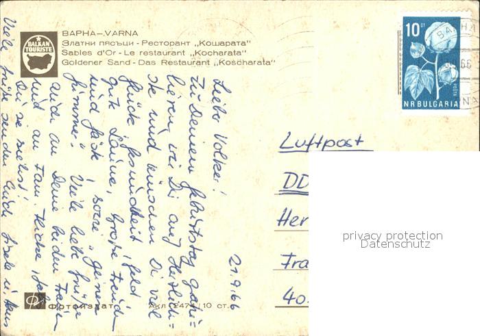 old postcard Varna Warna Goldener Strand Restaurant Koscharata postalisch gelaufen Erhaltung siehe scans