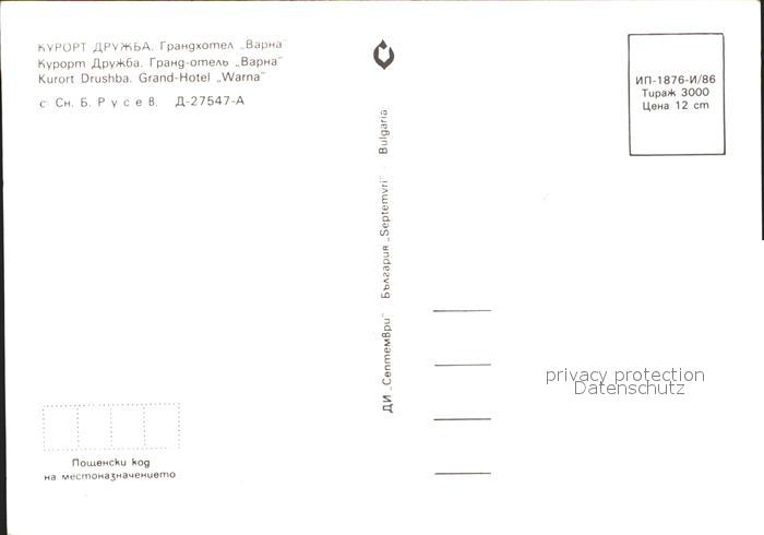 Varna Warna Grand Hotel Warna postalisch nicht gelaufen Erhaltung siehe scans
