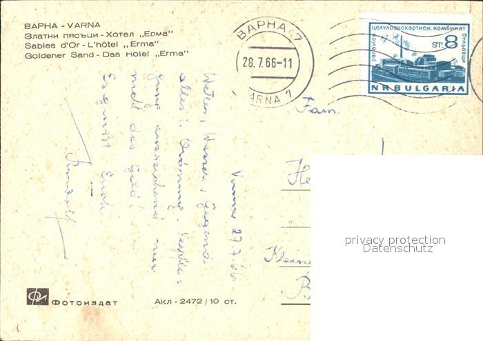 old postcard Varna Warna Hotel Erma postalisch gelaufen Erhaltung siehe scans