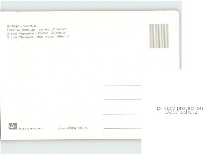 Varna Warna Hotel Glarus postalisch nicht gelaufen Erhaltung siehe scans