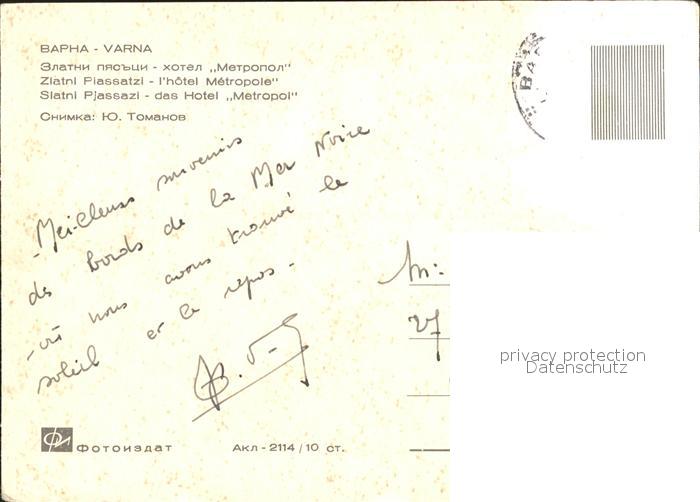 old postcard Varna Warna Hotel Metropol postalisch gelaufen Erhaltung siehe scans