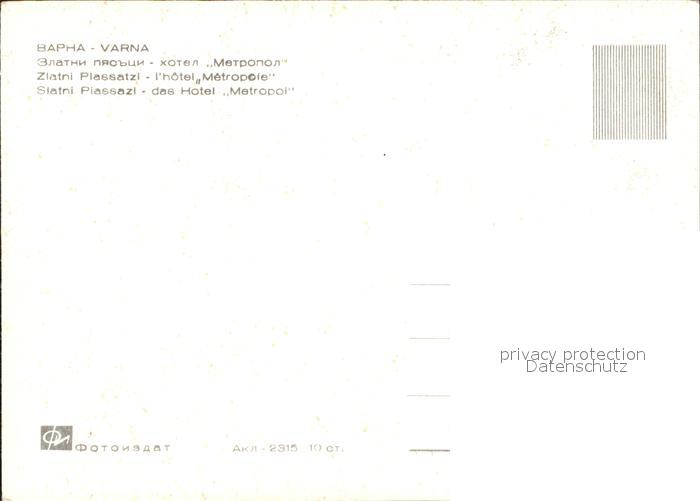 Varna Warna Hotel Metropol postalisch nicht gelaufen Erhaltung siehe scans