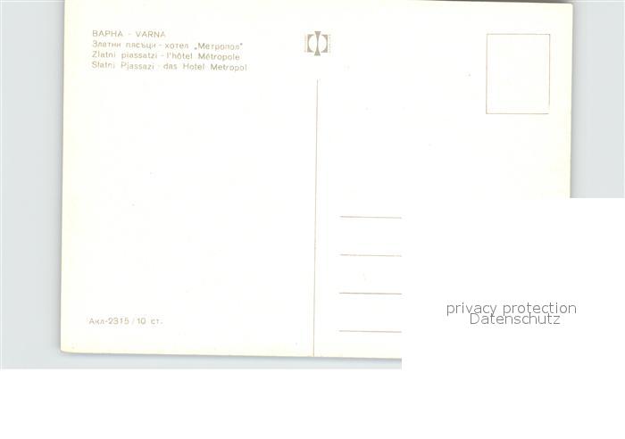 Varna Warna Hotel Metropol postalisch nicht gelaufen Erhaltung siehe scans