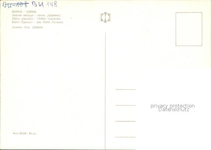Varna Warna Hotel Zarewez postalisch nicht gelaufen Erhaltung siehe scans