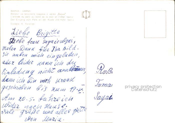 Varna Warna Parkeingang Hotel Varna postalisch nicht gelaufen Erhaltung siehe scans