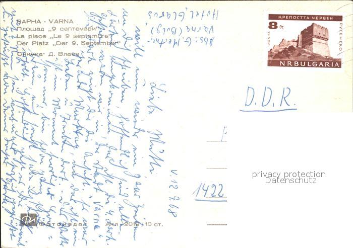 old postcard Varna Warna Platz des 9ten September postalisch gelaufen Erhaltung siehe scans