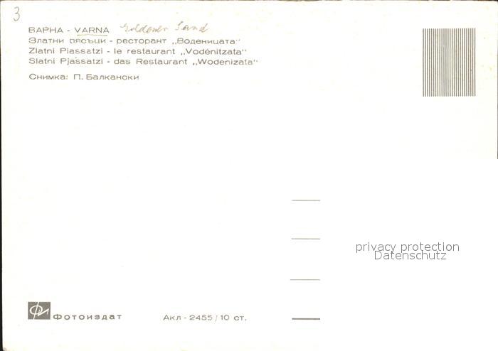 Varna Warna Restaurant Wodenizata postalisch nicht gelaufen Erhaltung siehe scans