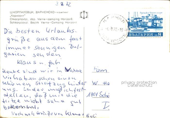 old postcard Varna Warna Schkorpilovzi Camping Strand postalisch gelaufen Erhaltung siehe scans