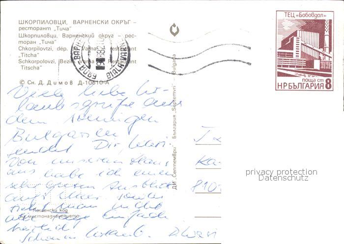 old postcard Varna Warna Schkorpolovzi Restaurant Titscha postalisch gelaufen Erhaltung siehe scans