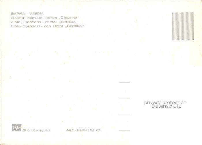 Varna Warna Slatni Pjassazi Hotel Serdika postalisch nicht gelaufen Erhaltung siehe scans