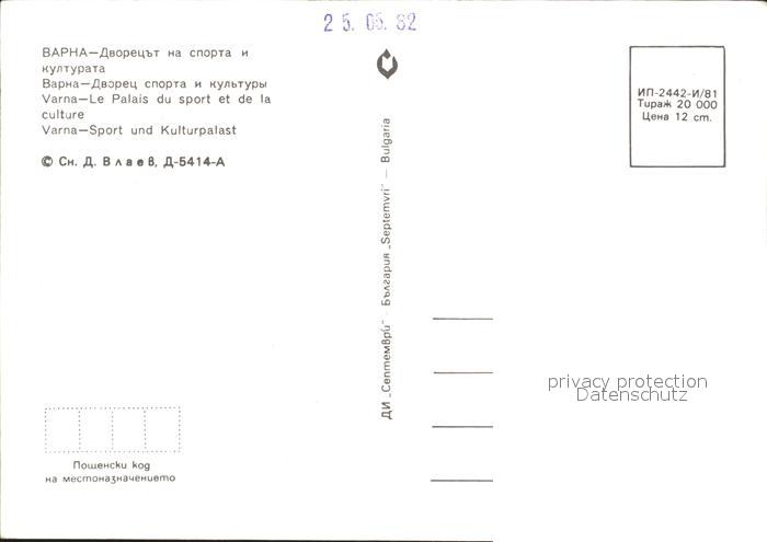 Varna Warna Sport- und Kulturpalast postalisch nicht gelaufen Erhaltung siehe scans
