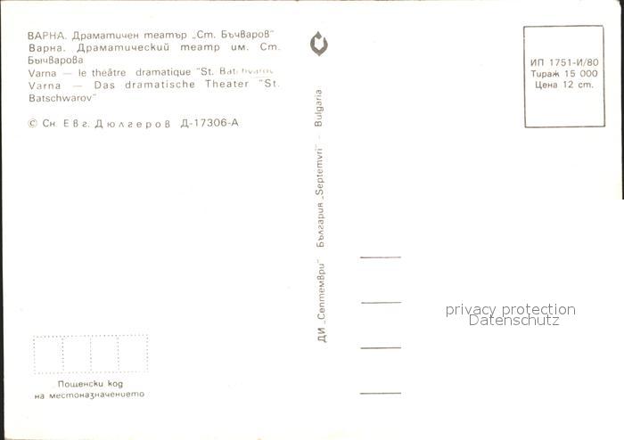 Varna Warna Theater St Batschwarov postalisch nicht gelaufen Erhaltung siehe scans