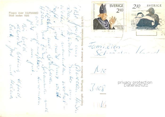 13624231 Varnamo Fliegeraufnahme postalisch gelaufen Erhaltung siehe scans [PaolaD17] old postcard Paol Katcode 11460