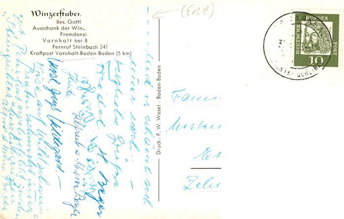 73902451 alte Postkarte Varnhalt Baden-Baden Winzerstuben postalisch gelaufen Erhaltung siehe scans [FriedD77] KatCode: 11110008211000