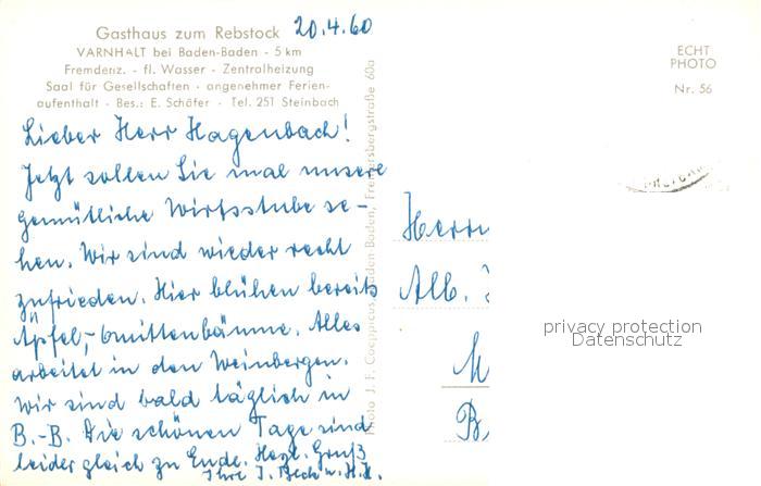 33623753 alte Postkarte Varnhalt Gasthaus zum Rebstock postalisch gelaufen Erhaltung siehe scans [PaolaD17] KatCode: 11110008211000