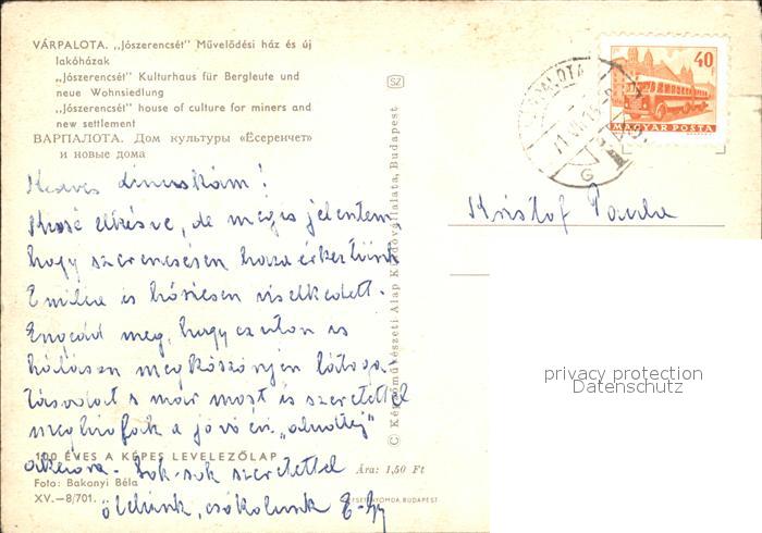 old postcard Varpalota Kulturhaus fuer Bergleute Wohnsiedlung postalisch gelaufen Erhaltung siehe scans