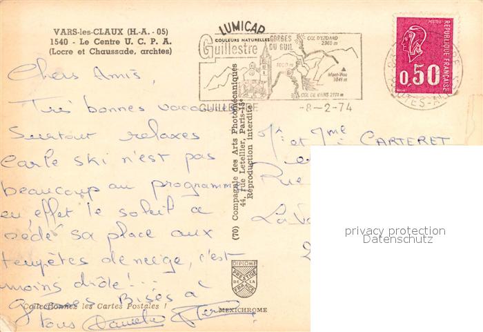 carte postale Vars Hautes-Alpes Centre U.C.P.A. Centres de vacances postalisch gelaufen Erhaltung siehe scans [FriedD77]