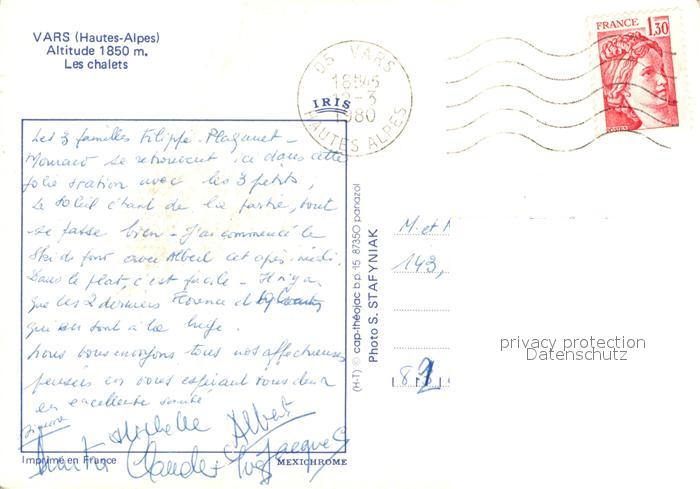 13545856 carte postale Vars Hautes-Alpes Les Chalets postalisch gelaufen Erhaltung siehe scans [WerneD78] KatCode: 11170005105177