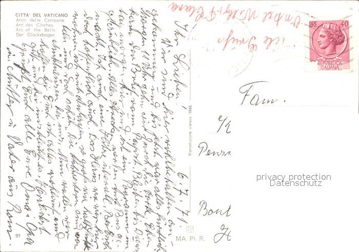 old postcard Vatican Citta del Vaticano Arco delle Campane postalisch gelaufen Erhaltung siehe scans