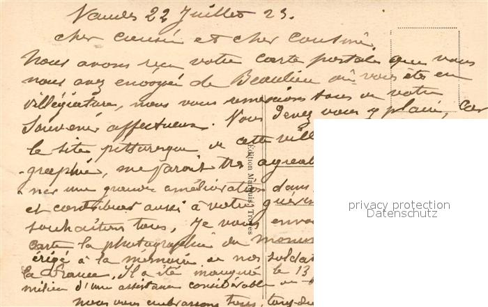 13552953 Vaudes Monument postalisch nicht gelaufen Erhaltung siehe scans [LiesaD40] KatCode: 11170010310399