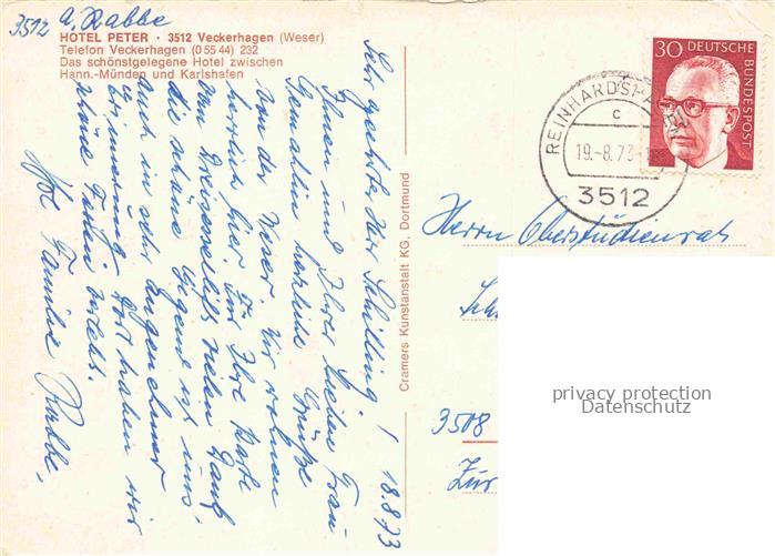 74037647 alte Postkarte Veckerhagen Hotel Peter Fahrgastschiff auf der Weser postalisch gelaufen Erhaltung siehe scans [FriedD77] KatCode: 11110006633022