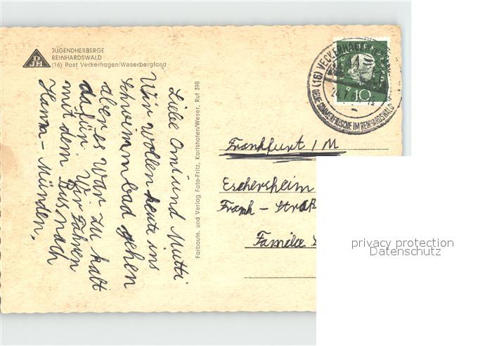 72038445 alte Postkarte Veckerhagen Jugendherberge Reinhardswald postalisch gelaufen Erhaltung siehe scans KatCode: 11110006633022