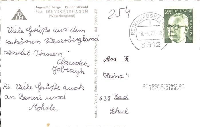 71839797 alte Postkarte Veckerhagen Jugendherberge Reinhardswald postalisch gelaufen Erhaltung siehe scans KatCode: 11110006633022