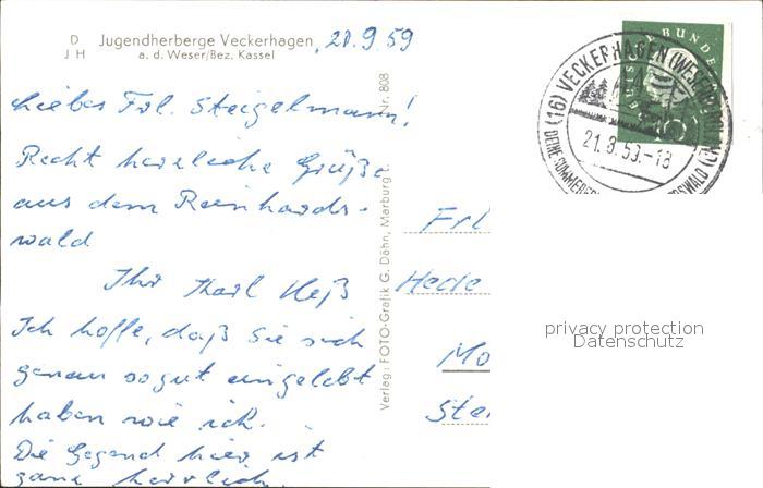 72072434 alte Postkarte Veckerhagen Jugendherberge postalisch gelaufen Erhaltung siehe scans KatCode: 11110006633022