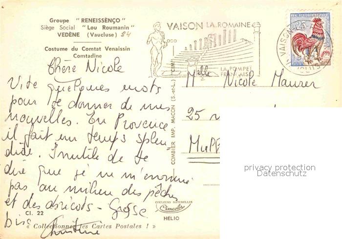 12687446 carte postale Vedene Costume du Comtat Venaissin Comtadine Trachten postalisch gelaufen Erhaltung siehe scans [FriedD77] KatCode: 11170084284141