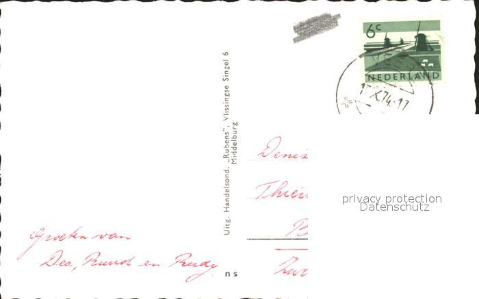 old postcard Veere Kirchenpartie postalisch gelaufen Erhaltung siehe scans