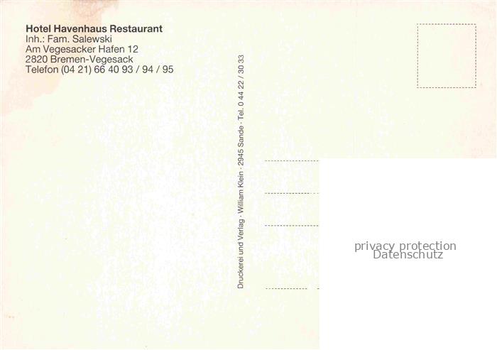 74021036 Vegesack BREMEN Hotel Havenhaus Restaurant Fremdenzimmer postalisch nicht gelaufen Erhaltung siehe scans [FriedD77] Frie Katcode 11110004011000