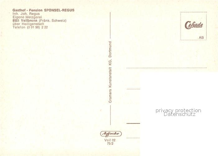 73643362 Veilbronn Gasthof Pension Sponsel Regus postalisch nicht gelaufen Erhaltung siehe scans [WerneD78] KatCode: 11110009471142
