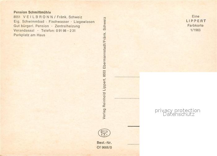73609471 Veilbronn Pension Schmittmuehle Swimming Pool postalisch nicht gelaufen Erhaltung siehe scans [FriedD77] KatCode: 11110009471142