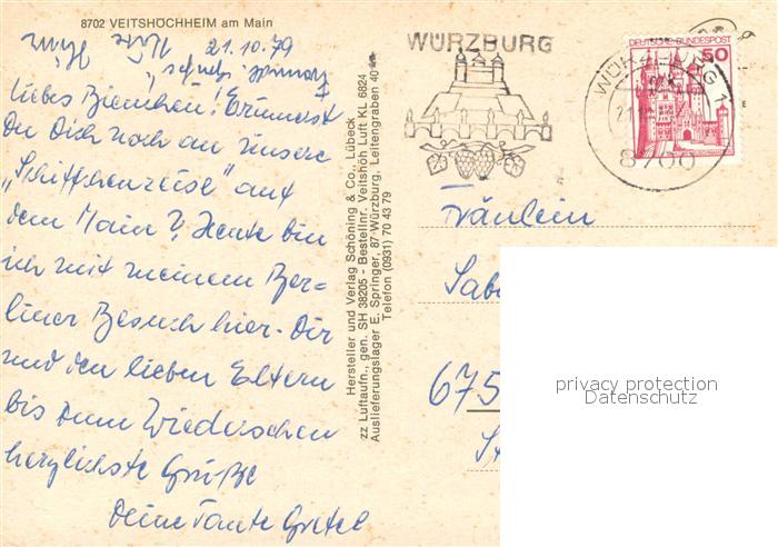 73643261 alte Postkarte Veitshoechheim Fliegeraufnahme postalisch gelaufen Erhaltung siehe scans [WerneD78] KatCode: 11110009679202