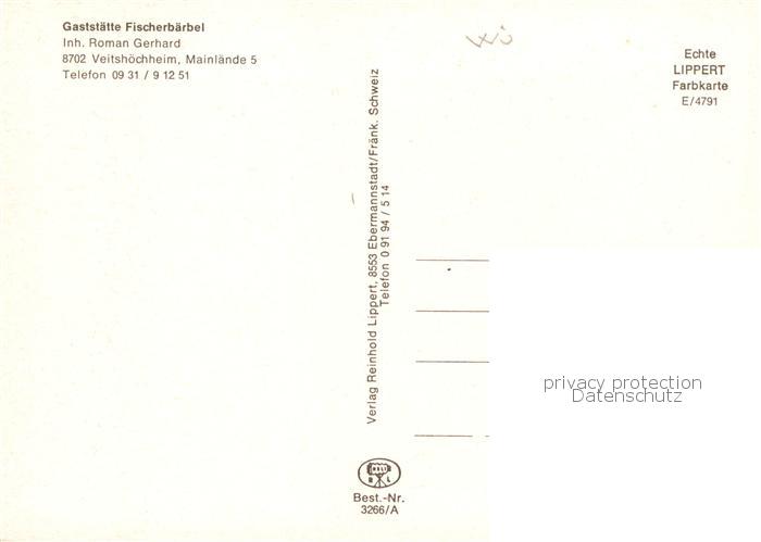 73863309 Veitshoechheim Gaststaette Fischerbaerbel Gastraum Terrasse postalisch nicht gelaufen Erhaltung siehe scans [FriedD77] KatCode: 11110009679202