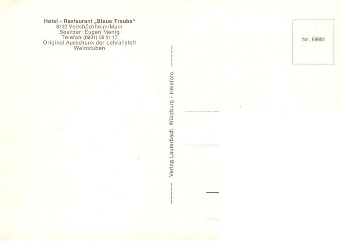73886785 Veitshoechheim Hotel Restaurant Blaue Traube postalisch nicht gelaufen Erhaltung siehe scans [FriedD77] KatCode: 11110009679202