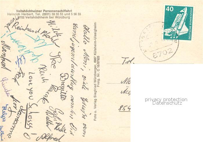 73735607 alte Postkarte Veitshoechheim Luftbild Fahrgastschiff Mainufer Pavillon postalisch gelaufen Erhaltung siehe scans [FriedD77] KatCode: 11110009679202