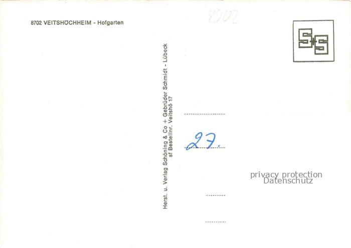 74054912 Veitshoechheim Wuerzburg Bayern Hofgarten postalisch nicht gelaufen Erhaltung siehe scans [WerneD78] Wern Katcode 11110009679202