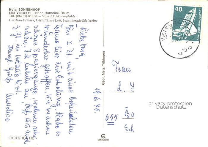 72425025 alte Postkarte Veitsrodt Hotel Sonnenhof postalisch gelaufen Erhaltung siehe scans KatCode: 11110007134089