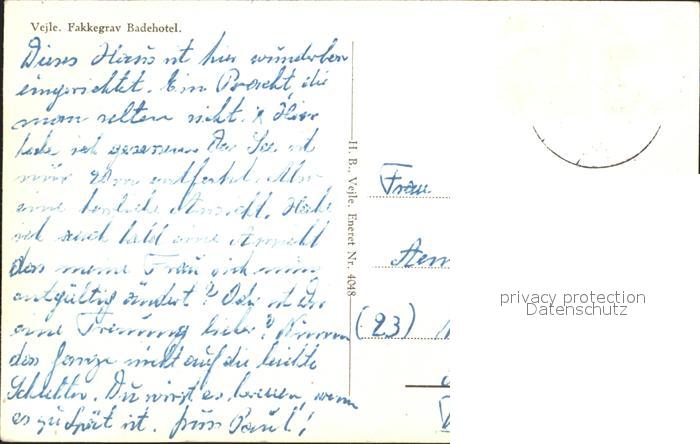 old postcard Vejle Fakkegrav Badehotel postalisch gelaufen Erhaltung siehe scans