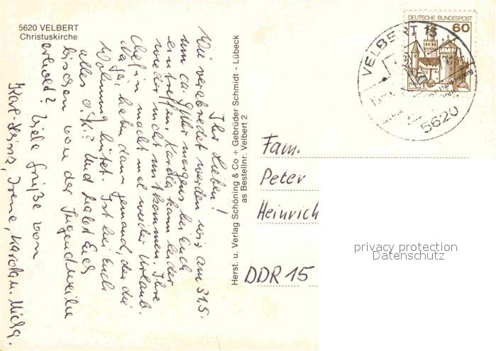 72846774 alte Postkarte Velbert Christuskirche postalisch gelaufen Erhaltung siehe scans [KathaD81] KatCode: 11110005158032