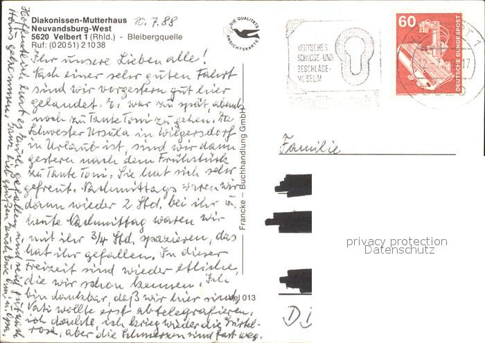 72035449 alte Postkarte Velbert Diakonissen Mutterhaus Altenheim Schule Bleibergquelle postalisch gelaufen Erhaltung siehe scans KatCode: 11110005158032