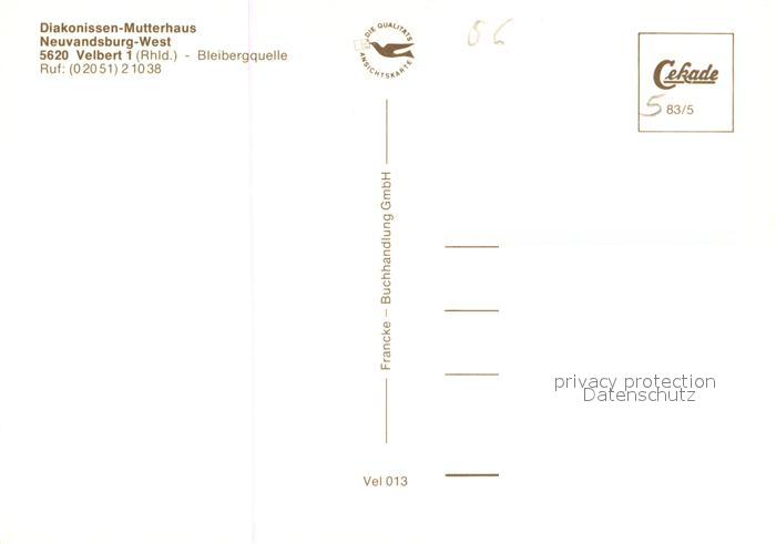 73065273 Velbert Diakonissen Mutterhaus Bleibergquelle Altenheim Schule Kirchhalle Jugendheim postalisch nicht gelaufen Erhaltung siehe scans [FriedD77] KatCode: 11110005158032