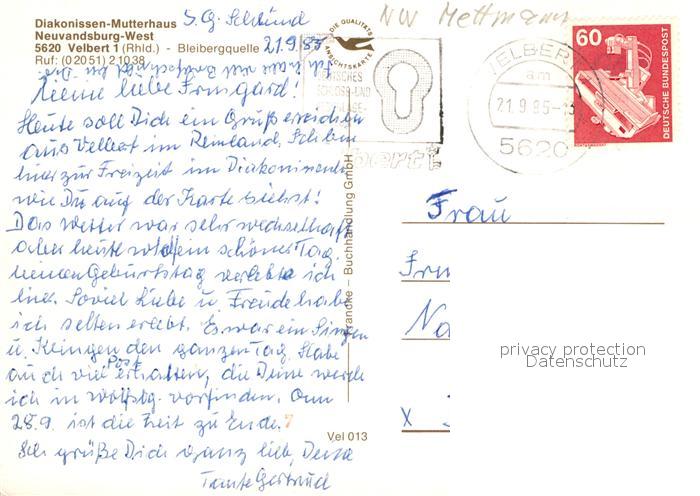 72934011 alte Postkarte Velbert Diakonissen Mutterhaus Haus Tanne Altenheim Jugendheim Kirchhalle Schule postalisch gelaufen Erhaltung siehe scans [WerneD78] KatCode: 11110005158032