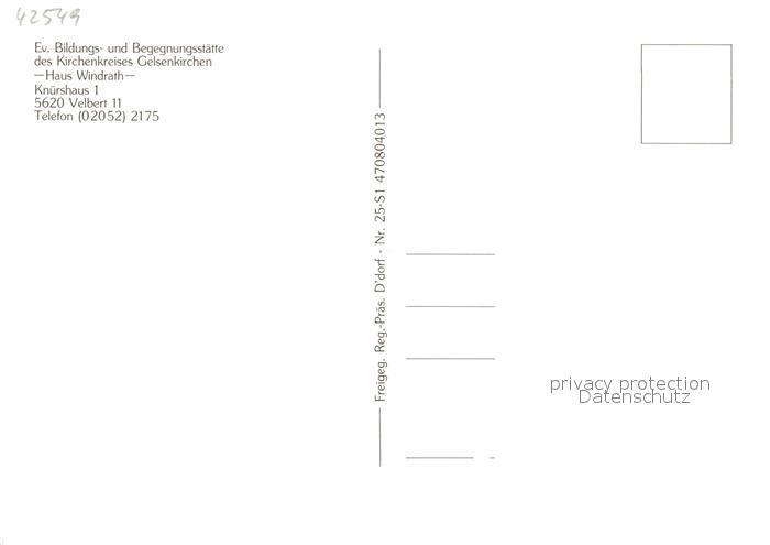 73541325 Velbert Fliegeraufnahme Bildungs und Begegnungsstaette Haus Windrath postalisch nicht gelaufen Erhaltung siehe scans [KathaD81] KatCode: 11110005158032