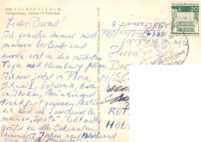 73943318 alte Postkarte Velbert Sparkasse Schwimmbad postalisch gelaufen Erhaltung siehe scans [WerneD78] KatCode: 11110005158032