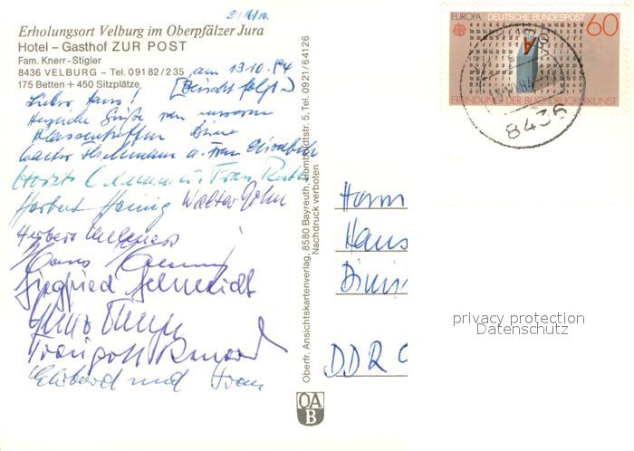 73641802 alte Postkarte Velburg Hotel Gasthof Zur Post Restaurant postalisch gelaufen Erhaltung siehe scans [FriedD77] KatCode: 11110009373167