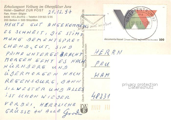 73725009 alte Postkarte Velburg Hotel Gasthof zur Post Restaurant postalisch gelaufen Erhaltung siehe scans [FriedD77] KatCode: 11110009373167