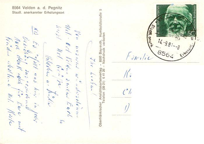 73932663 alte Postkarte Velden Mittelfranken Bayern Fliegeraufnahme Hotel Hallenbad Ortspartie postalisch gelaufen Erhaltung siehe scans [WerneD78] KatCode: 11110009574160