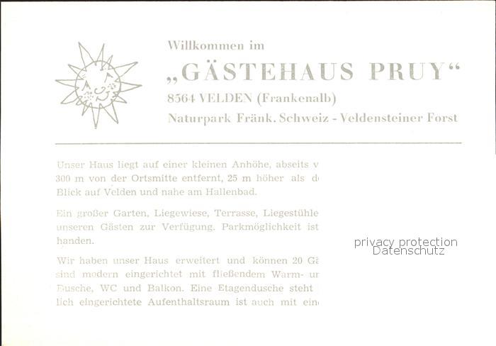 72235092 Velden Mittelfranken Gaestehaus Pruy postalisch nicht gelaufen Werbekarte (keine Postkarte) Erhaltung siehe scans KatCode: 11110009574160